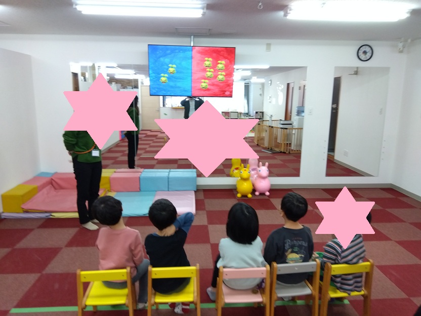 ここ最近、未就学の活動は動的な内容が多かったため、気分転換に着席して行う活動を取り入れています。