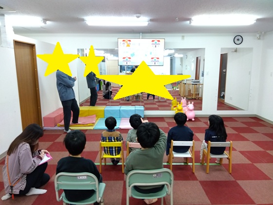 本日は未就学のお子さんと小学生のお子さんで行う全体活動の様子についてご紹介いたします!